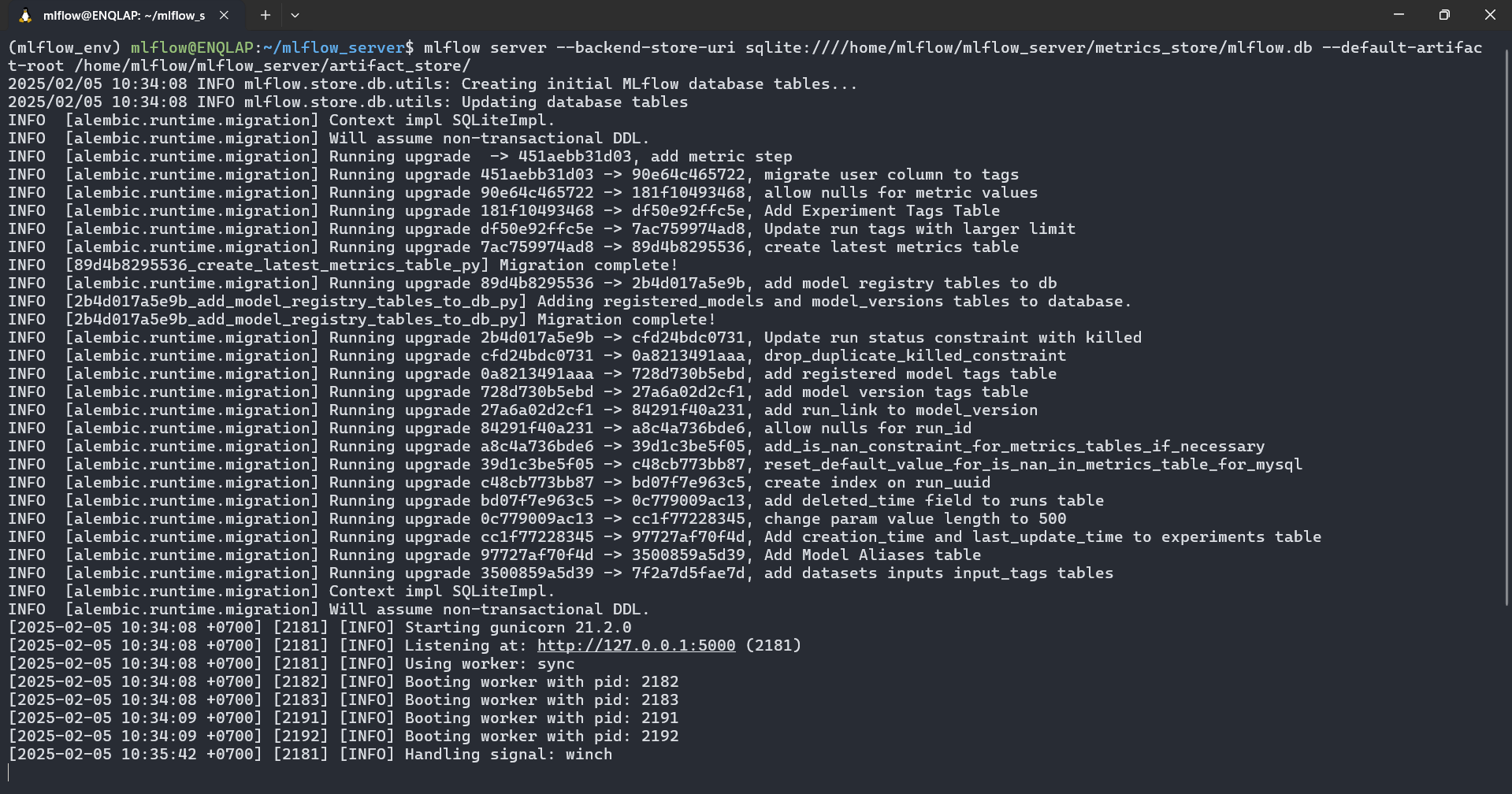 mlflow server --backend-store-uri sqlite:////home/mlflow/mlflow_server/metrics_store/mlflow.db --default-artifact-root /home/mlflow/mlflow_server/artifact_store/